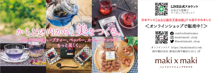 #makixmaki【美しく健康に。カンボジア産ペッパー&ナッツ】#ぶらり途中下車の旅でも紹介!新宿区西早稲田のお店。からだの内から美をつくる。天然素材の食品やアパレル雑貨の宝庫です♪▶オンラ..