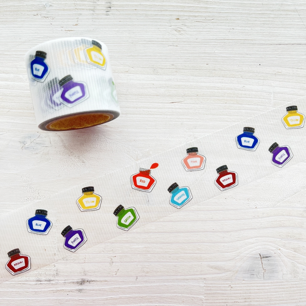 #文具女子博popupin池袋2023【限定販売商品】小屋女子DIYカフェ・まぜこぜインクカラフルなインク瓶をデザインした養生テープ✨透明感な背景とビビットなインクの色合いがとっても可愛い♡495円(..