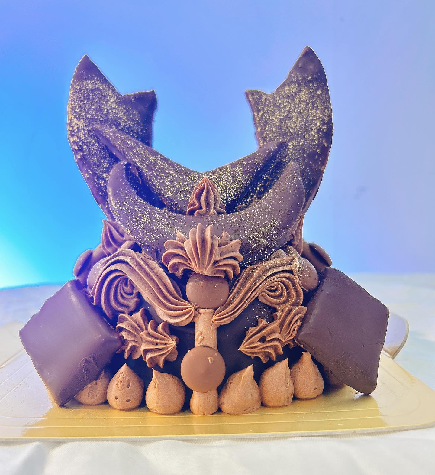 'こんにちはサブールです·͜·【🎏こどもの日*兜ケーキご予約受付中】端午の節句に、華やかな“兜ケーキ”はいかがですか?重厚感のあるチョコレートの兜に、金粉をあしらった特別な一台。お子さまの健やかな..