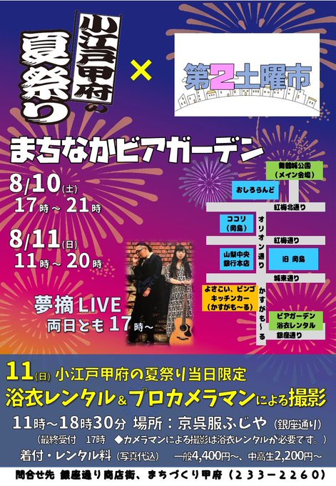 8月10日(土)と11(日)に銀座通りのお店で#ビアガーデン開催さらに11日は限定京呉服ふじやで浴衣レンタル&プロカメラマンによる撮影ができます人気のキッチンカー出店や豪華景品が当たるビンゴ大..