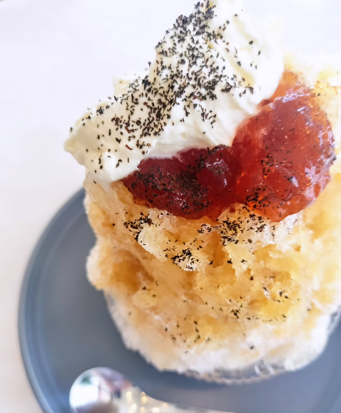 【かき氷 アールグレイ】アールグレイのジュレをたっぷりしのばせています!本日13時〜皆様のご来店お待ちしております。#かき氷#アールグレイ