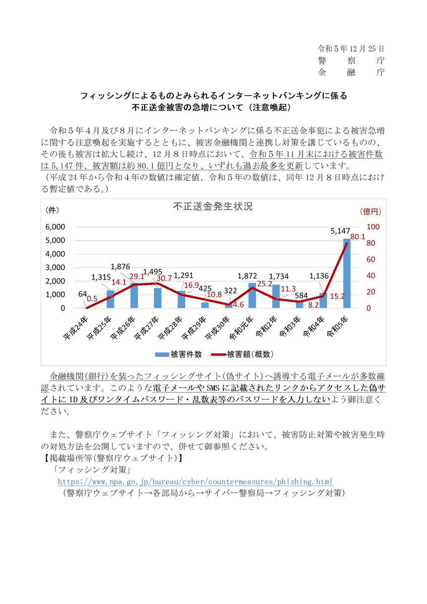【フィッシングに注意!】フィッシングによる被害が急増しています。自然な日本語で危機感をあおったり、顧客情報の更新手続きを装うなどフィッシングメールも巧妙になっています。こまめに入出金履歴を確認し、不審..