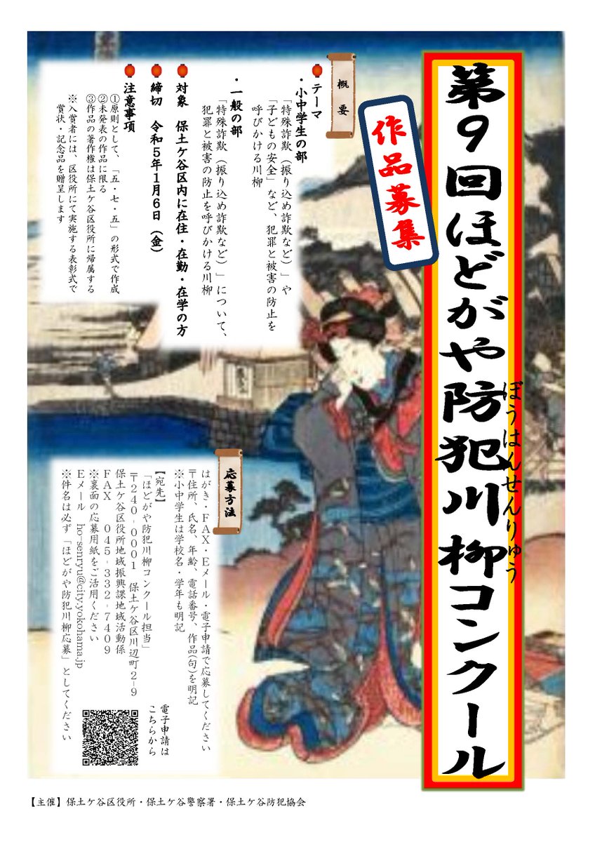 【作品募集中】「第9回ほどがや防犯川柳コンクール」あなたの一句で犯罪のない街を目指しましょう!入賞者には賞状と記念品を贈呈✨応募をお待ちしております。締切りは令和5年1月6日(金)まで。詳細は↓www..