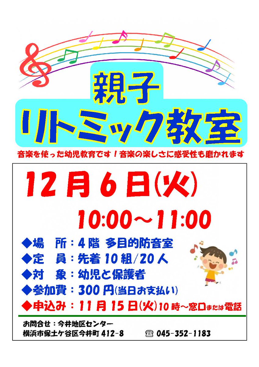 【参加者募集中親子リトミック教室】音楽を使った幼児教育「#リトミック」を体験しませんか?音楽の楽しさに加えて感受性も磨かれます✨日時:12月6日(火)10時~11時対象:幼児と保護者申込みは、今井地区..