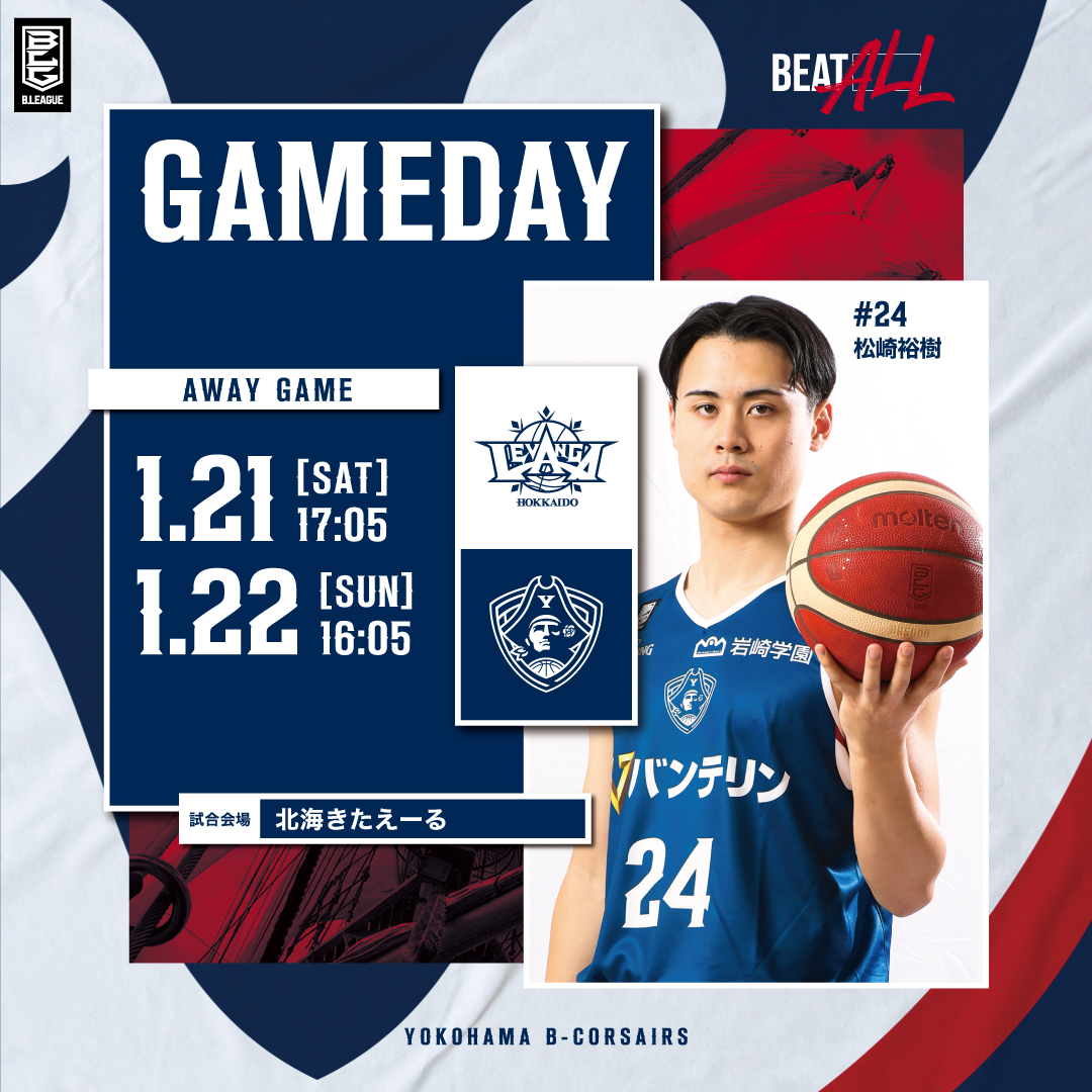 \GAMEDAY/B1リーグ戦は後半戦へ突入🔥負けられない戦いが続く海賊たちへ本日も熱い応援をよろしくお願いします!🗓1/21(土)17:05TIPOFF🆚#レバンガ北海道📍北海きたえーる📡#バスケッ..
