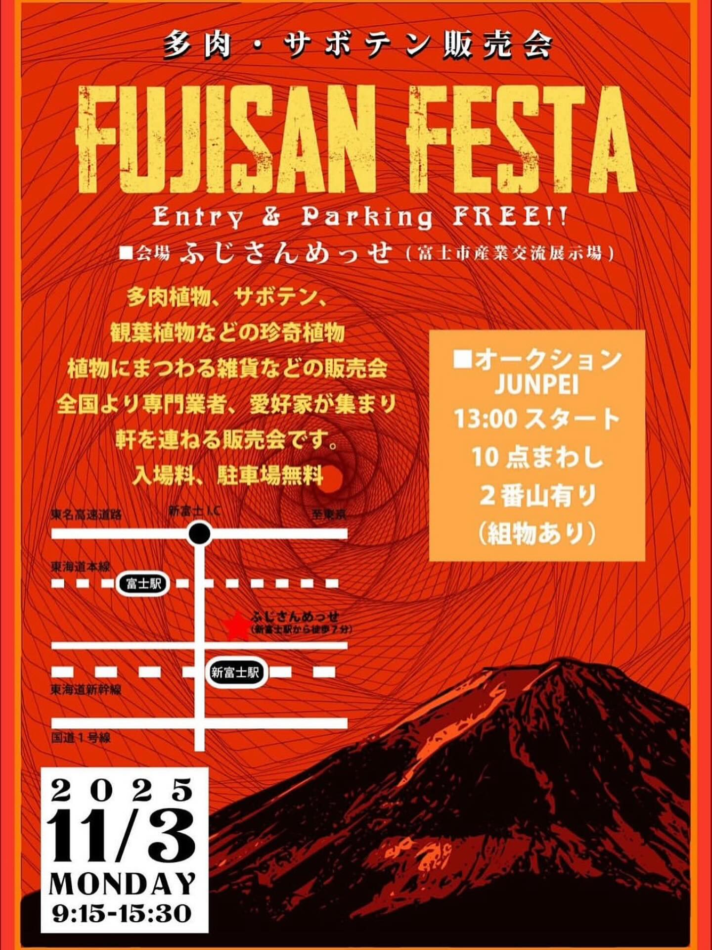 🌵★イベント出店のお知らせ★☀️fujisanfesta☀️【日時】11月3日(月)祝日9:15〜15:30【会場】ふじさんめっせ(富士市産業交流展示場)〒416-0932静岡県富士市柳島189−8f..