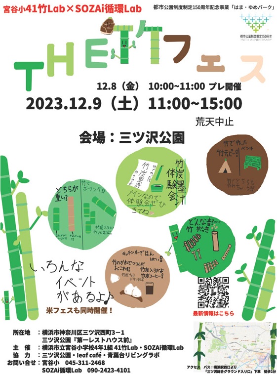 【#イベント】12月8日、9日に市立宮谷小学校4年1組「41竹Lab」とSOZAi循環Labが「THE竹フェス」を開催します。五感を使って竹を楽しむイベントがいっぱい!半年かけて開発した「竹炭墨汁」の..