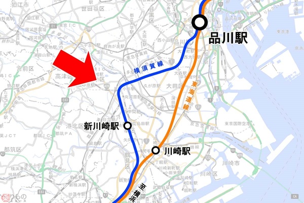 しかし後者は、川崎駅を通らない代わりに武蔵小杉方面へ迂回します。