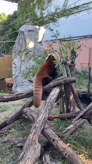 レッサーパンダのこどもたちは、今日で141日齢💫 笹を食べるようになりました🎋 木組に登って笹を食べているのは、女の子の「くるみ」です😊💕 #八景島 #シーパラ #フォレストリウム #レッサーパンダ