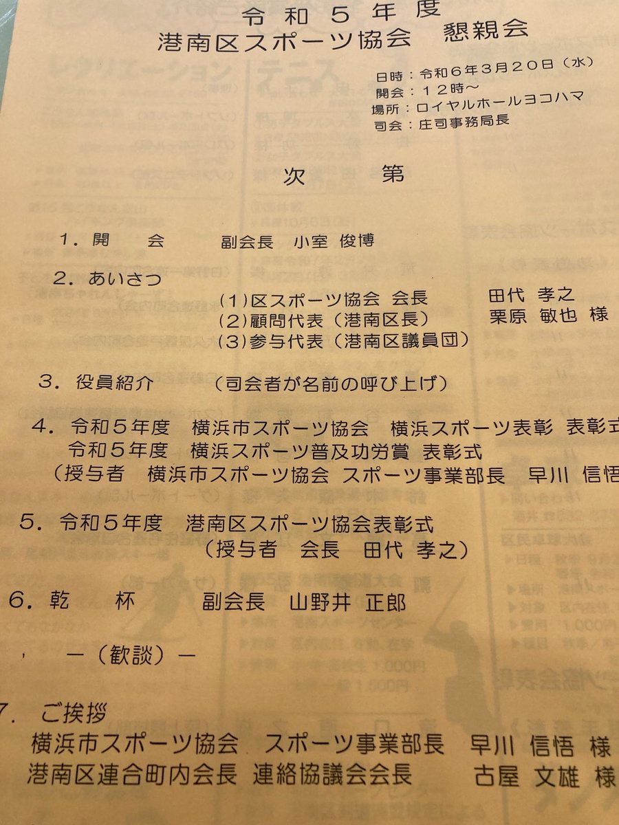 ロイヤルホールヨコハマで港南区スポーツ協会の懇親会ご開催されました。横浜市スポーツ協会の横浜スポーツ表彰式も行われました。港南区をスポーツで支える各部から代表者が集結。