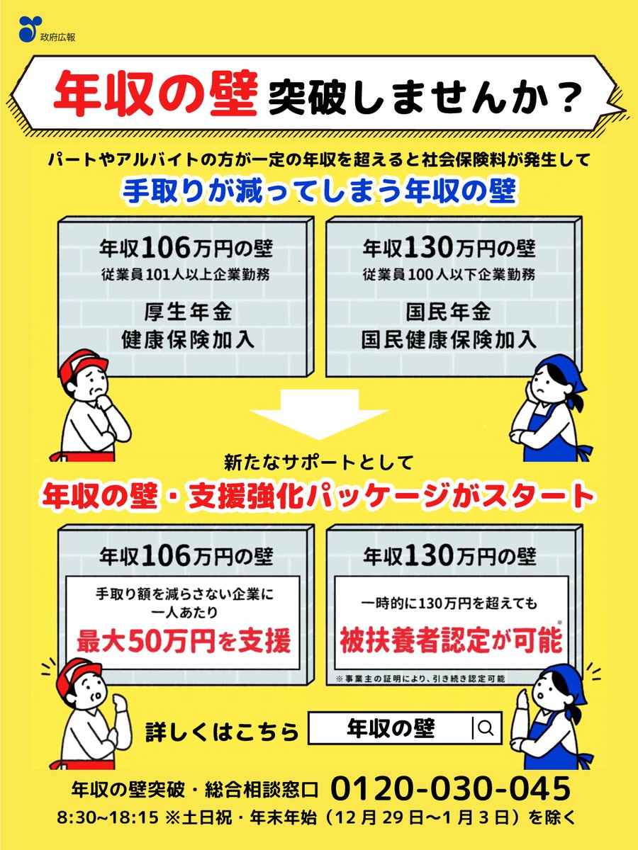 /「年収の壁」がなかったらもっと働けるのに…\パートやアルバイトの方が一定の年収を超えると社会保険料が発生して手取りが減ってしまう年収の壁。そこで、新たなサポートとして年収の壁・支援強化パッケージがス..