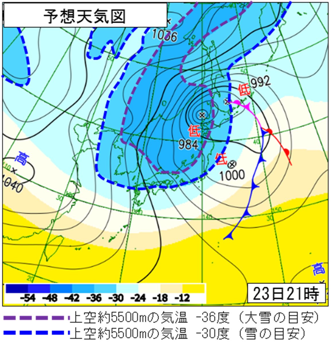 【大雪、暴風雪、高波に警戒】25日頃にかけてこの冬一番の強い寒気が流れ込む。北日本から西日本の日本海側を中心に平地・山地共に警報級の大雪となり、23日夜から24日にかけては北陸、近畿北部、山陰等では降..