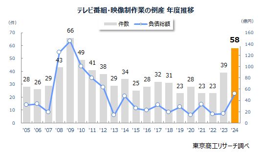テレビ番組や映像・動画制作などを手がける企業の倒産が急増している。
