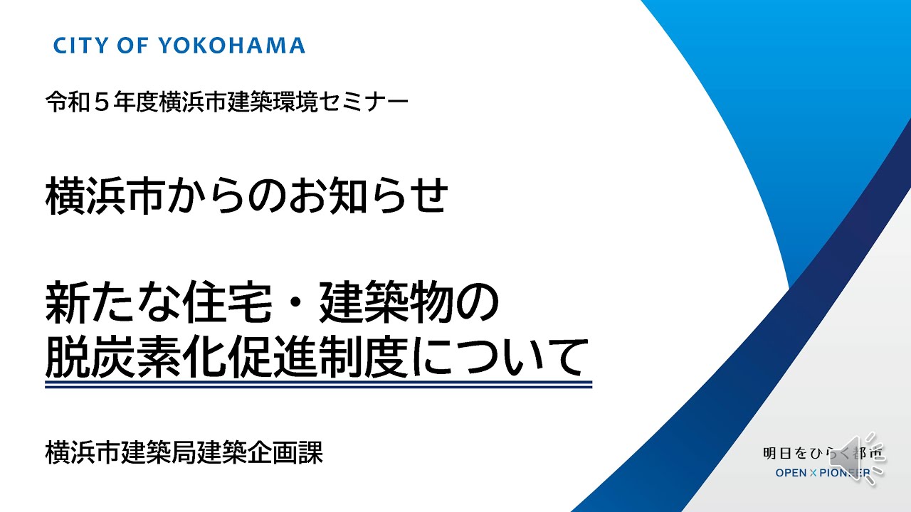 【令和5年度横浜市建築環境セミナー】新たな住宅・建築物の脱炭素化促進制度