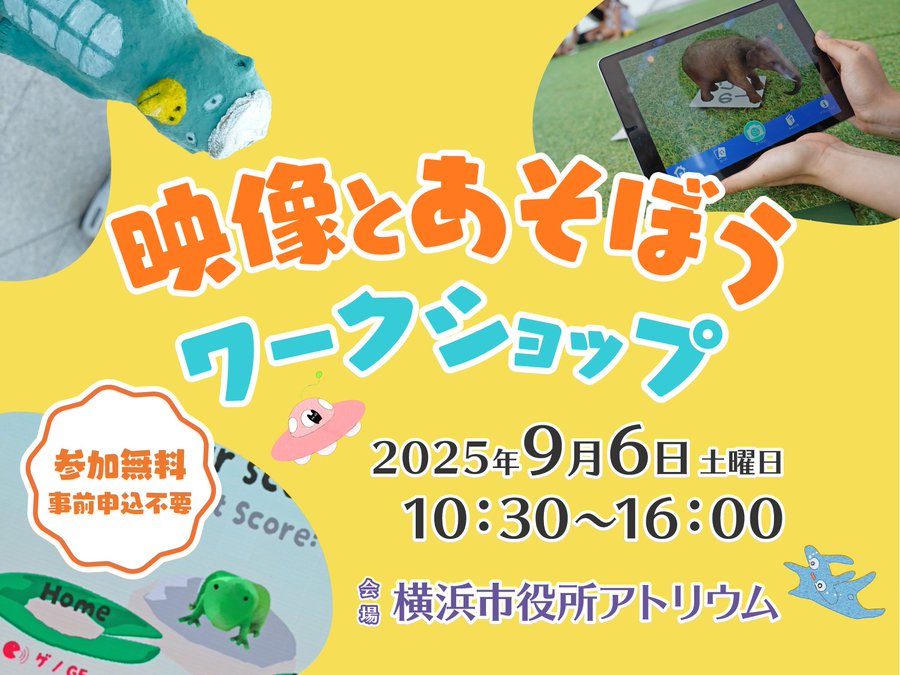 //映像とあそぼうワークショップ2025⧵\声でゲームしたり、ARアプリで動物を見つけたり子どもから大人まで楽しめる体験型展示イベント!9/6(土)10:30~16:00横浜市役所1Fアトリウム申込不..