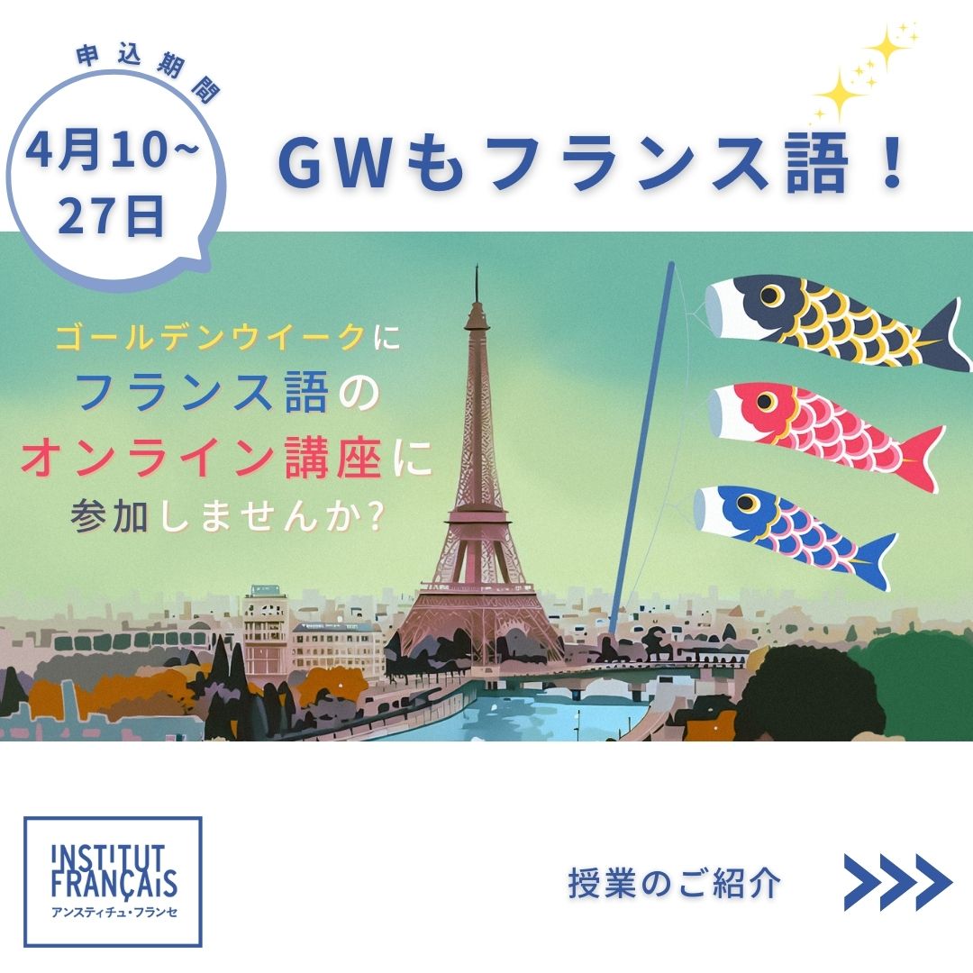 #GWもフランス語! ✨ アンスティチュ・フランセでGWにフランス語を一緒に学びませんか? オンライン且つ単発の授業になるので、ちょっとしたスキマ時間でフランス語を学ぶことができます! 詳細はこちらから👉