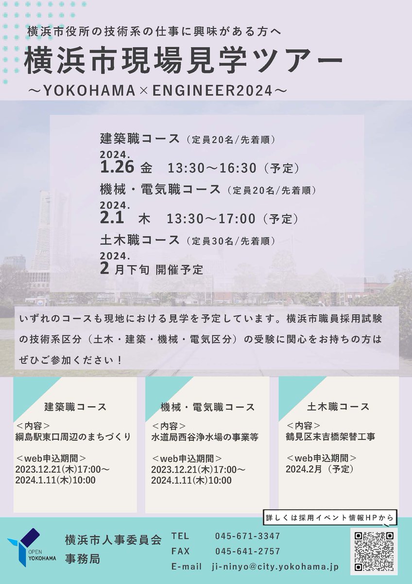 【技術職志望者向け・現場見学ツアー】本市の技術職が活躍する、最前線の現場を巡るツアーを開催します!建築職、機械・電気職ツアーの申込みは12月21日(木)17時開始です!ぜひお申込みください!※詳細及び..