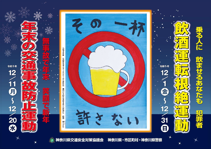 年末の交通事故防止運動は本日までですが、車もバイクも自転車も、無事故で新年を迎えましょう!#年末 #交通安全 #新年 #飲酒運転 #横浜003