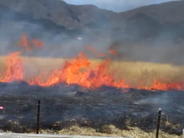 【#箱根の風景6】#仙石原湿原で火入れが行われました。火入れは、仙石原湿原の景観を維持するために毎年行われています。今年度は、一般のお客様向けに、火入れ作業を近くで観察できる観覧場所を設けました。#自..