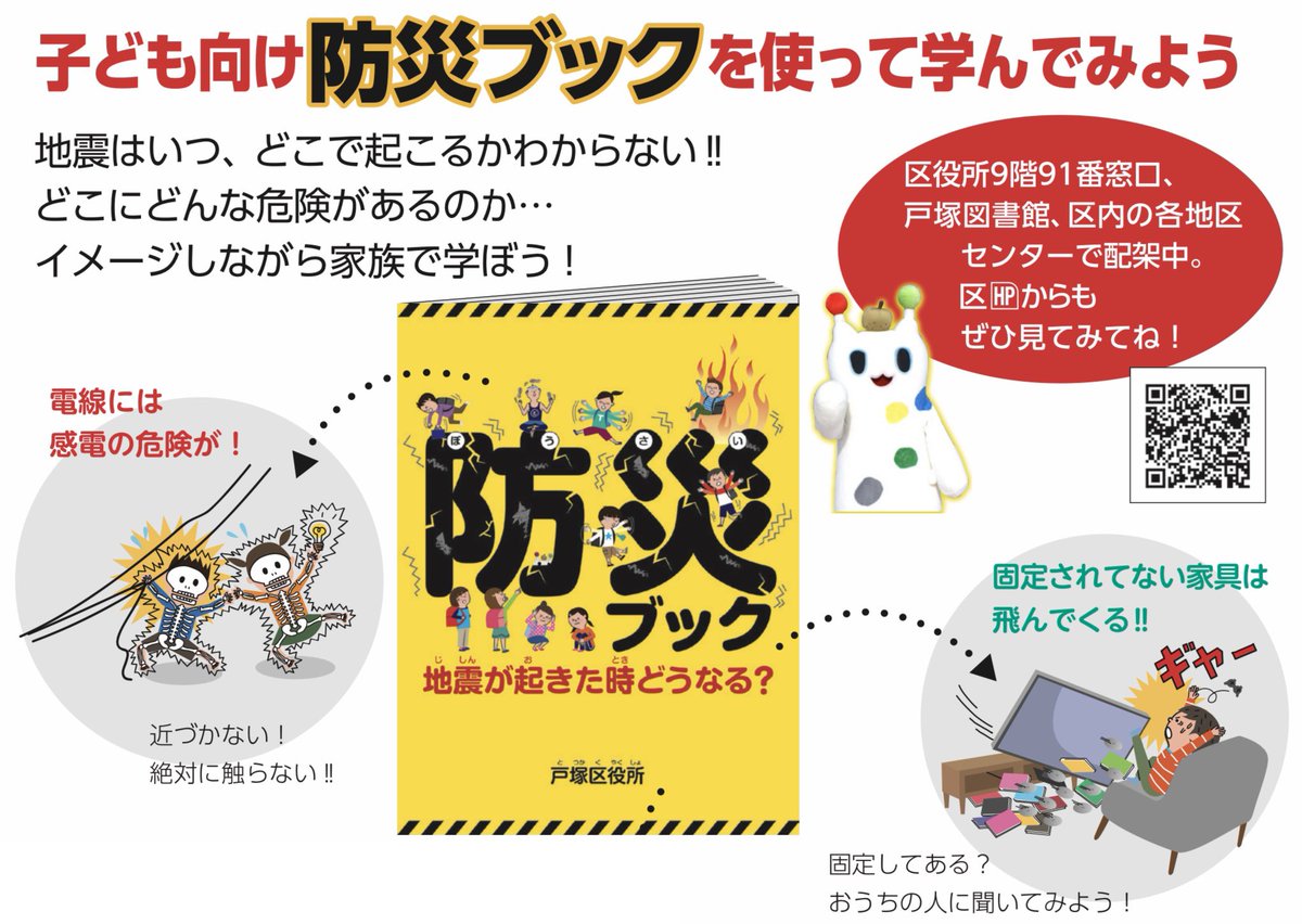 「とつか」らしいイラストた〜っぷりの『#子ども向け防災ブック』をご存知ですか😌クイズやミッションなどを通して、親子でご覧ください✨www.city.yokohama.lg.jp/tots..#戸塚区 ..