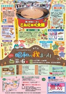 横浜市の友好交流自治体群馬県昭和村「昭和の秋まつり」目玉は、秋の味覚たっぷりのこんにゃく大鍋!横浜市のPRブースや横浜中華街のお店も出展します日時:10月6日(日)10時~16時場所:昭和村総合福祉セ..
