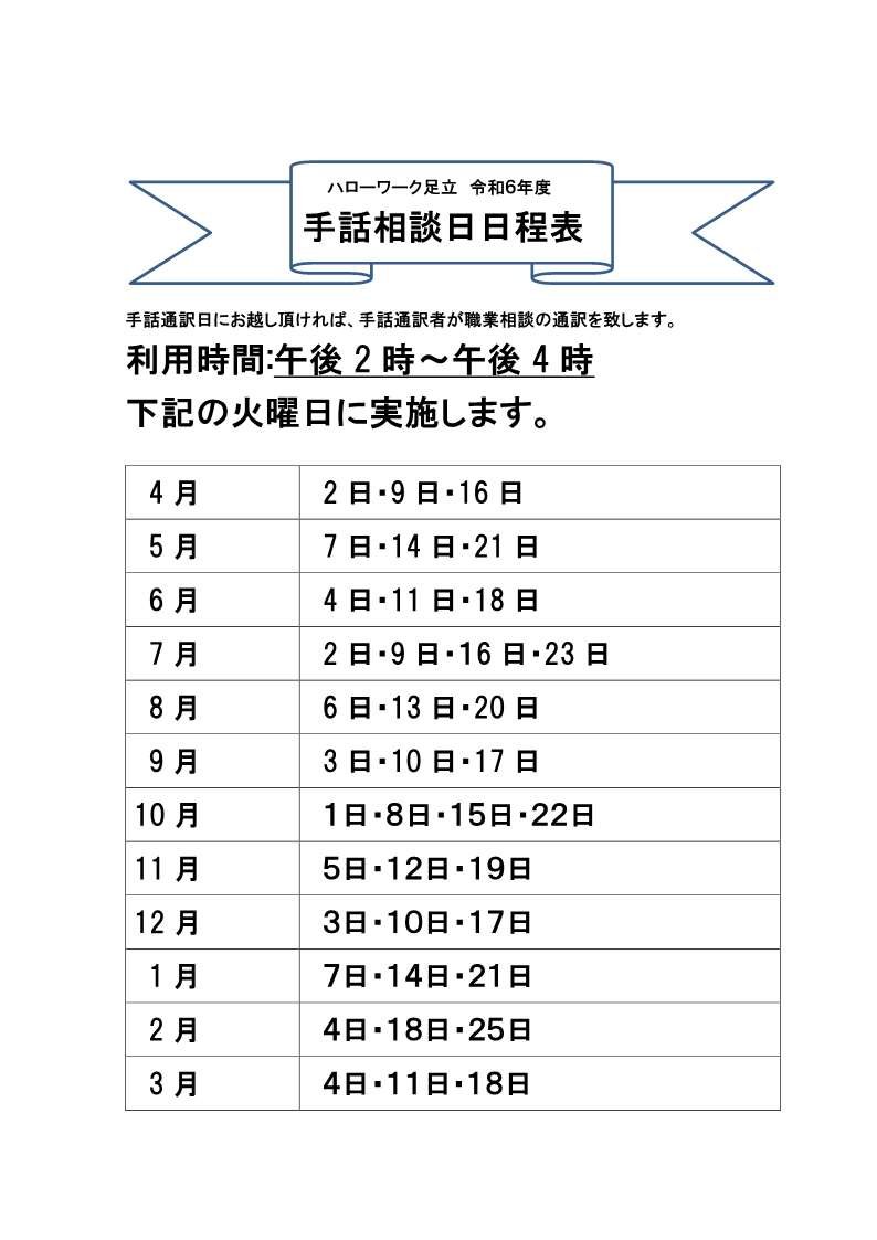 📢障害者職業相談#手話相談日のご案内#ハローワーク足立では、手話による職業相談を希望される方を対象とした相談日を設けています相談日については、添付ファイル「手話相談日日程表」をご覧ください詳しくはjs..