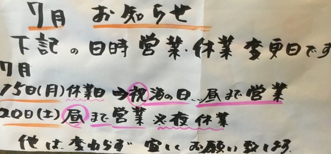 〜お知らせ〜7月20日(土)ディナータイムは誠に勝手ながら臨時休業とさせて頂きます。翌日21日(日)のラン..