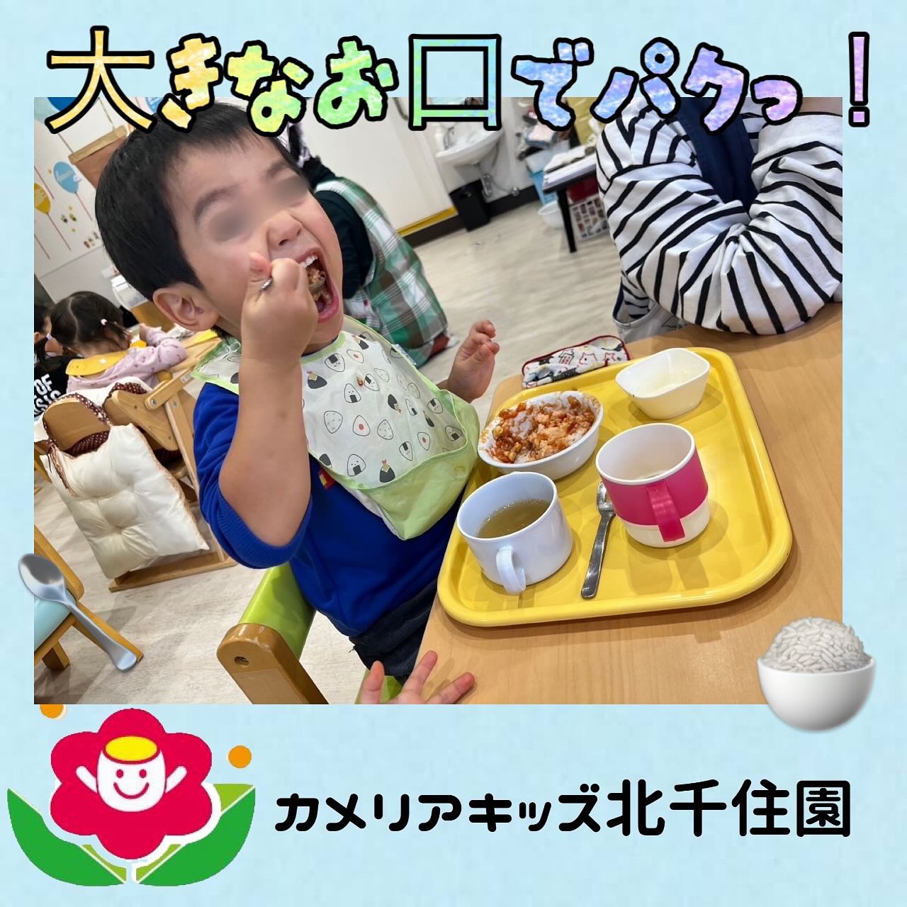 美味しいご飯を大きなお口で食べる子どもたち😆スプーンで食べるのも上手になり成長を感じます✨随時説明会開催中です!ご連絡お待ちしております!他SNSも要チェック♪HP:🔍カメリアキッズyoutube:🔍..