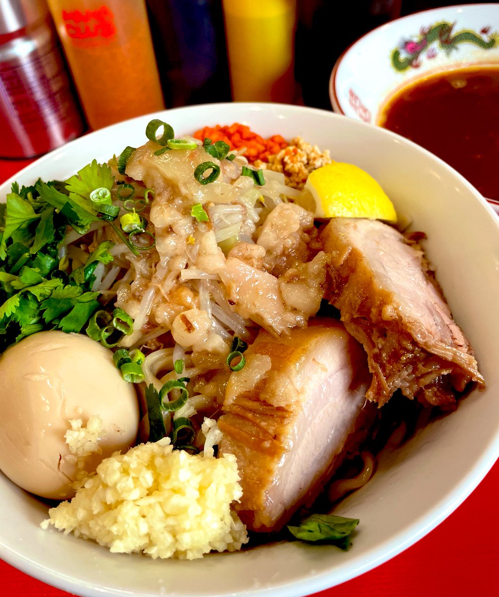 鷹の目北千住店濃厚旨辛トムヤムつけ麺(麺250g・野菜以外全増し+❤️🥚)1週間だけの限定って聞いたら行くしか無い🦅エスニック風味漂う濃厚な旨味と程よい辛味がめっちゃ好みで旨🐴〜🥰💕マシマシパクチー最..
