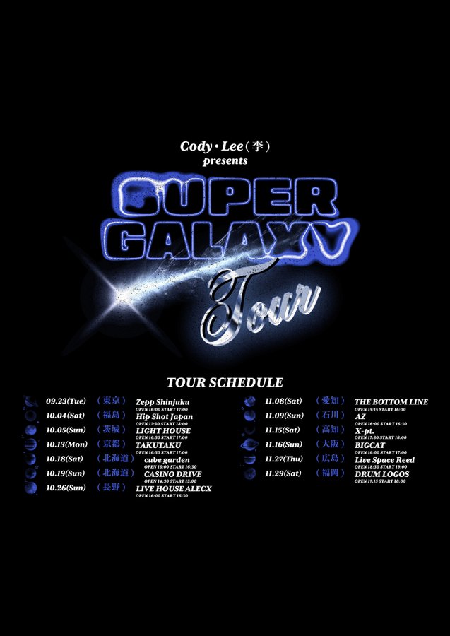 /先行抽選受付中\◤Cody・Lee(李)◢Major2ndEP「SILVER」を引っ提げ全国13会場を回るワンマンツアー「SUPERGALAXYTOUR」開催11/8(土)16:00開演ボトムライン..