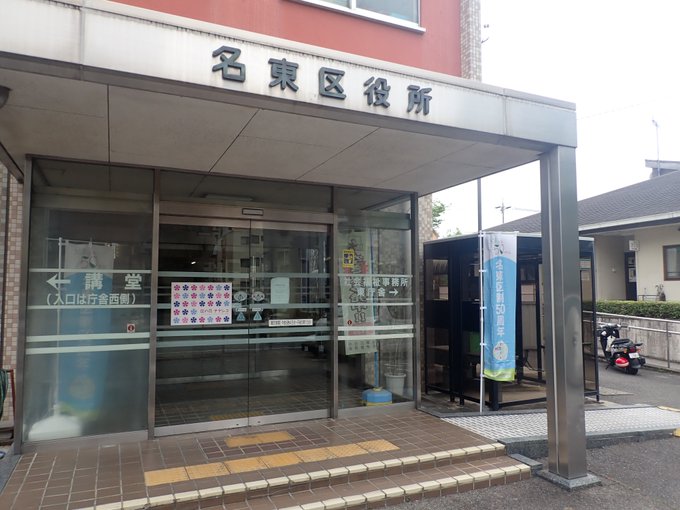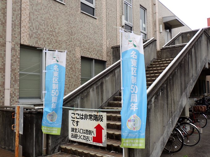 【あなたは正解しましたか?】名東区制50周年を記念し、区役所敷地内に記念のぼり旗を設置しています。また、建物内を除く、区役所敷地内に記念のぼり旗が何本あるか正解した方には、ささやかなプレゼントを差し上..