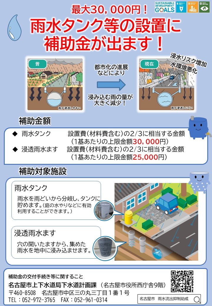 雨につよく、環境にやさしい家づくりをしませんか名古屋市では、雨水タンクには上限30,000円浸透雨水ますには上限25,000円の補助金が出ます!お気軽にご相談ください!(事前申請必要)https://..