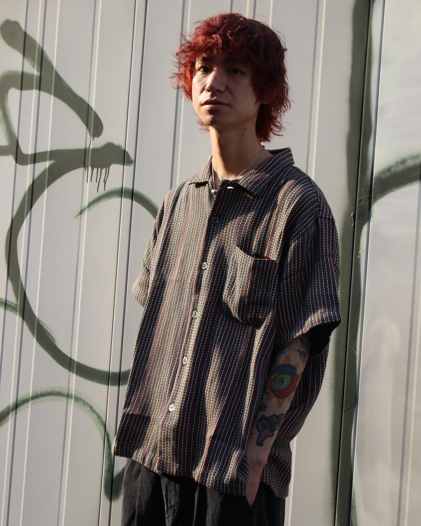formedexpressionフォルムデクスプレッションのリネンジャケットにalexandermanamiによる独特なタッチの風刺画プリントはコットン製のビンテージファブリック。#alexander..