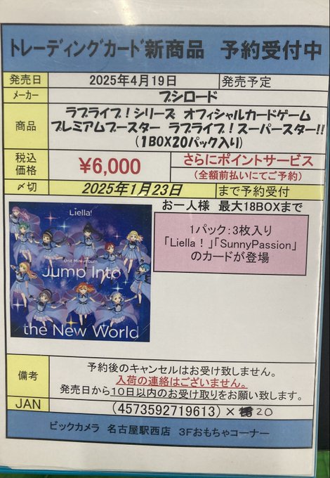予約情報ラブライブ!シリーズオフィシャルカードゲーム(通称:#ラブカ)のパック商品第二弾『プレミアムブースターラブライブ!スーパースター』のご予約受付中予約受付期間:1/23(木)まで※上限:おひとり..