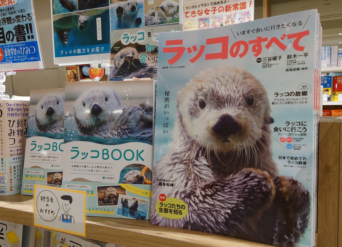 まだまだ暑い日が続いていますが、涼しげに水にぷか~っと浮かぶラッコたちを見て涼んでください#ラッコのすべて#廣済堂出版#ラッコBOOK#グラフィック社