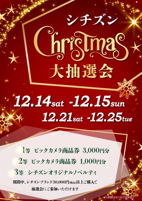 シチズンクリスマス大抽選会開催!!#シチズンから素敵なクリスマスプレゼント期間中、税込み30000円以上のシチズンブランド腕時計ご購入でハズレなしの抽選会にご参加いただけます1等はなんとビックカメラ商..