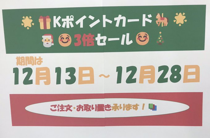 12/13(金)〜12/28(土)の間くまざわ書店Kポイントカードがずーっとオトクなポイント倍です!この機会にぜひご利用くださいお取り置きも承ります#くまざわ書店名古屋セントラルパーク店
