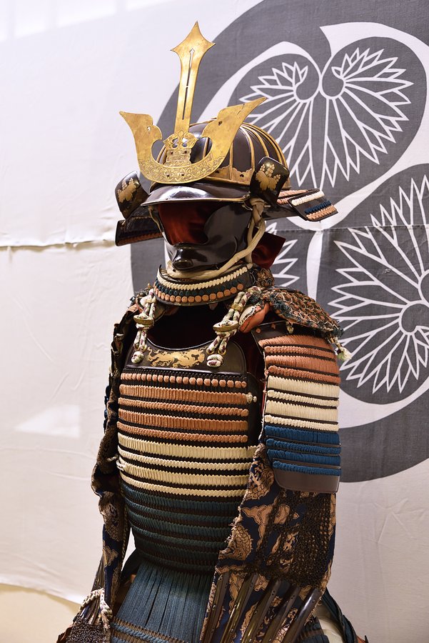 蒔絵(まきえ)を施し、裂(きれ)は金襴を用いるなど、絢爛豪華な桃山文化を象徴。徳川家康に近侍した武士が着用したとされる具足です。紅・白・花色・紺段威具足(駿府御分物)桃山-江戸時代16-17世紀「もの..