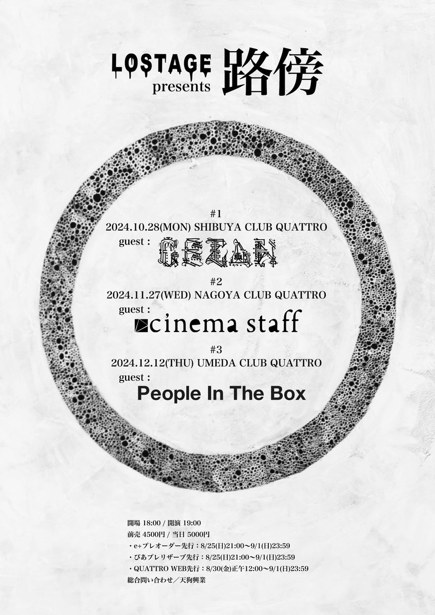 𝑵𝒆𝒘𝒔𝒉𝒐𝒘𝒂𝒏𝒏𝒐𝒖𝒏𝒄𝒆𝒅!!【LOSTAGE】東名阪クアトロツアーが決定!LOSTAGEpresents「路傍」10/28(Mon)SHIBUYACLUBQUATTRO11/27(Wed)NA..