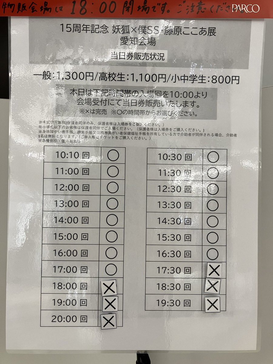 【15周年記念妖狐×僕SS・藤原ここあ展】愛知会場本日は画像の時間帯の当日券を開店より会場受付にて販売いたします。※本日最終日のため18:00閉場となります前売券販売ページ↓http://eplus...