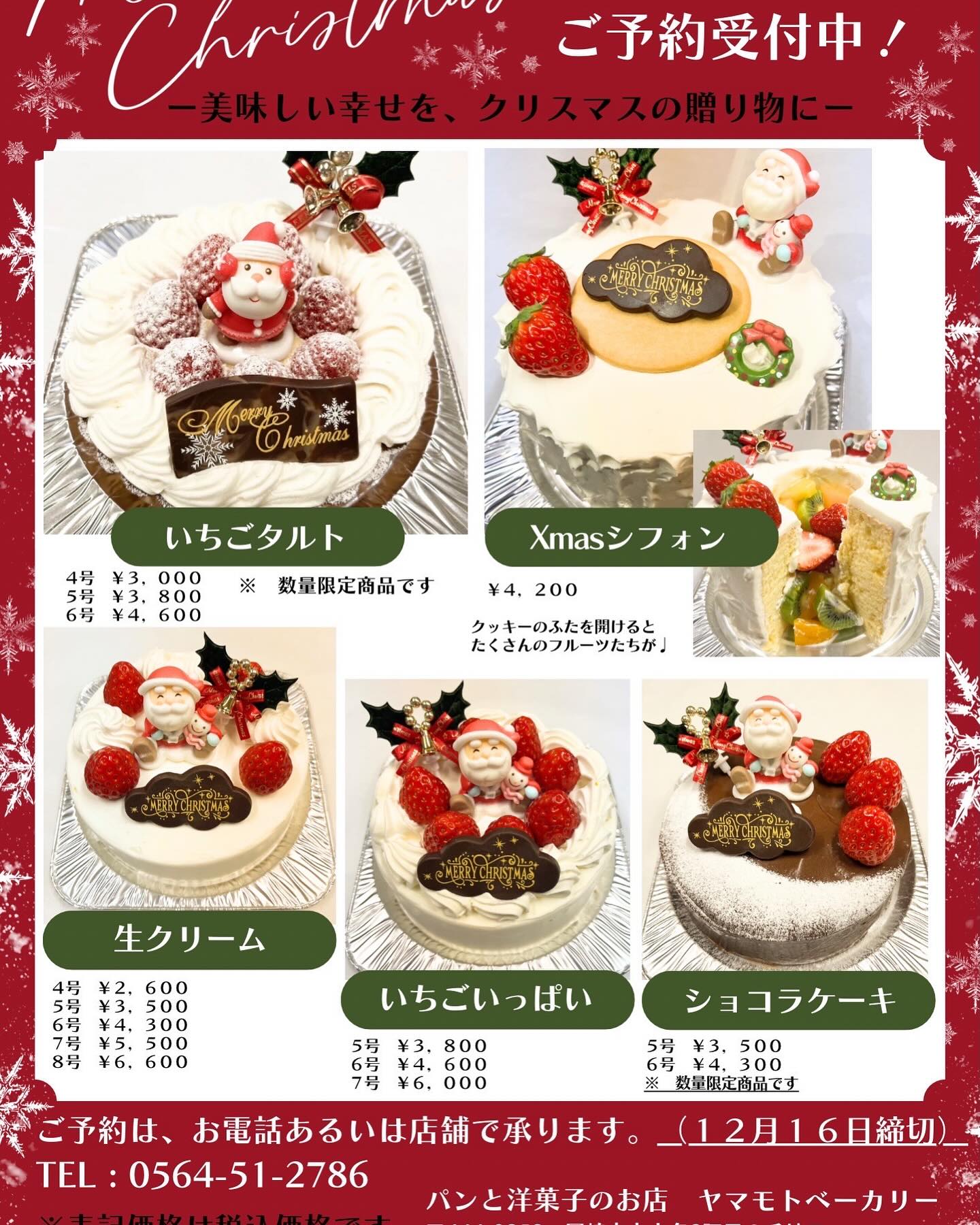 こんにちは♪♪本日も元気に営業しております☺️!!クリスマスケーキのご予約始まりました😆!!ヤマベのケ..