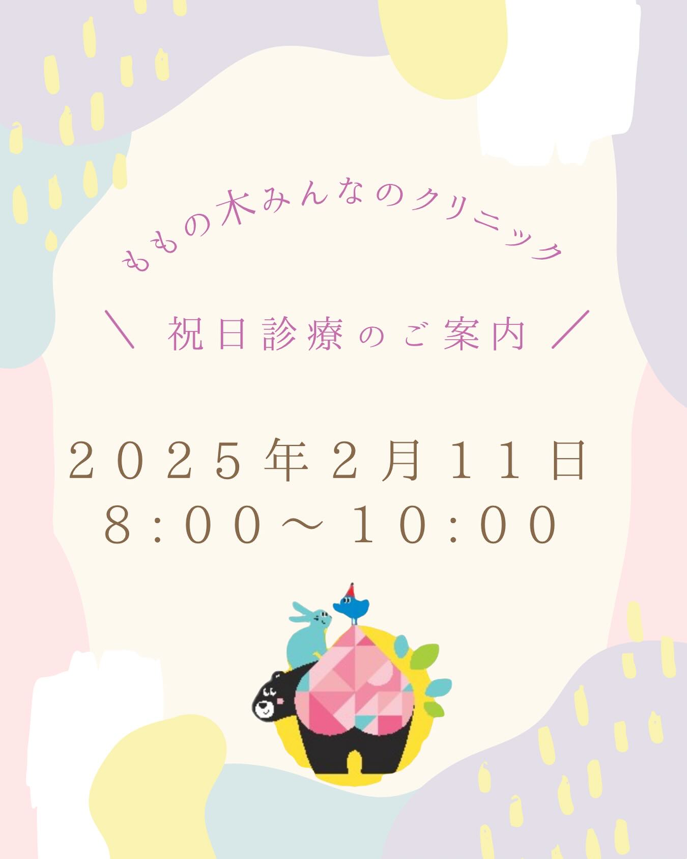 岡崎市のももの木みんなのクリニックです🍑今回も祝日営業いたします。2025年2月11日8:00〜10:00医師と看護師2人のみで診療するため、お待たせしご迷惑をおかけすると思いますが申し訳ございません..