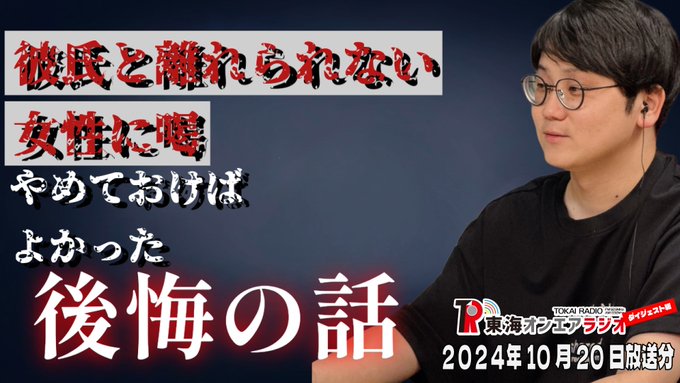 10月20日放送の「#東海オンエアラジオ」のダイジェスト版が、TOKAIRADIO公式YouTubeに公開されました!「【まじめ回?】彼氏と離れられない女性に喝、やめておけばよかった後悔の話」http..