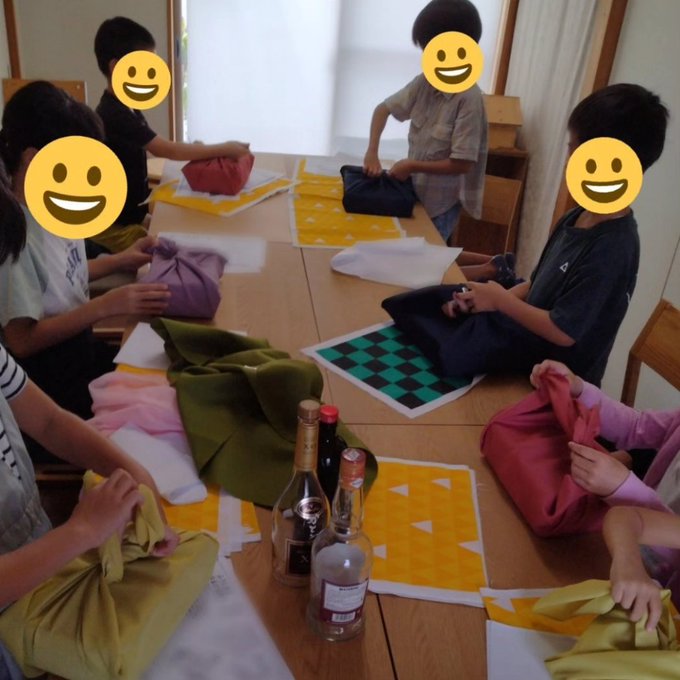 おおがやから南に徒歩2分。地域の託児所「みんなのおうち連尺」さんにて、夏休みの子ども向けに風呂敷講座を開催しました風呂敷の歴史に始まり菓子箱の包み方、ティッシュケースの作り方、ビンづつみをワークショッ..