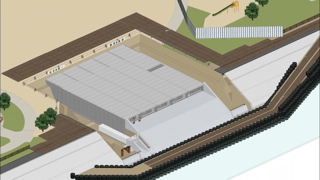 大山川調節池は川の氾濫による浸水被害を防ぐために、増水した水を一時的に貯留し、大山川の水位を低下させることを目的とした地下貯留施設です。動画は調節池へ洪水の一部を流し込むため堤防の一部を低くする越流堤..