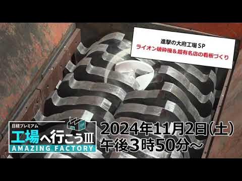 工場へ行こうⅢ11月2日(土)放送【進撃の大府工場SP ライオン破砕機&超有名店の看板づくり】