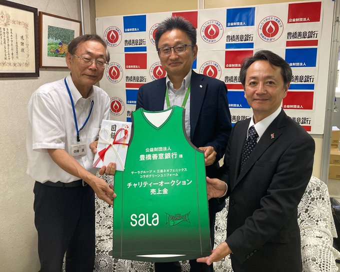 【ご報告】 このたび、4月7日(月)から13日(日)までオフィシャルパートナーの #サーラグループ さまと共同で開催した「サーラグループ× #三遠ネオフェニックス チャリティーオークション」の売上金贈呈式を、6月27日(金)に執り行いました。