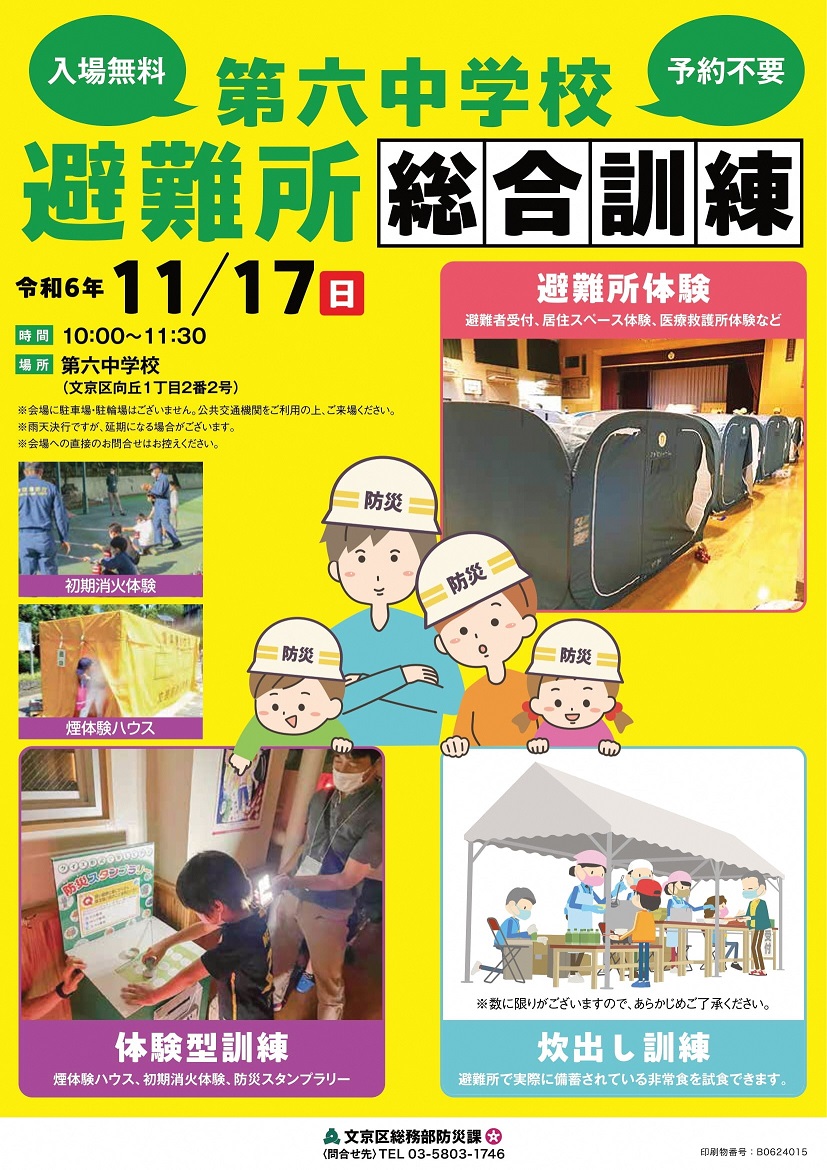 【イベント】11/17(日)10時から11時30分まで第六中学校避難所総合訓練を実施します。避難所運営の様子や、煙体験ハウス、防災クイズスタンプラリー等を体験できます。臨時災害FM放送局の試験放送も行..