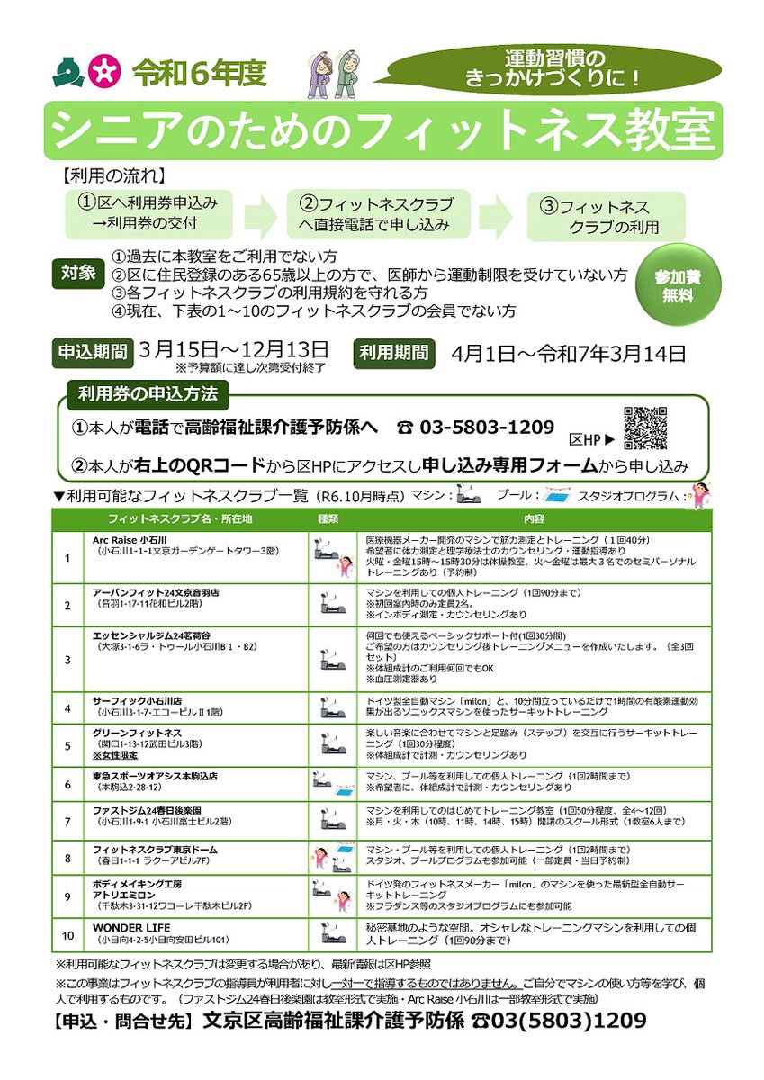 【お知らせ】シニアのためのフィットネス教室に参加していますか?利用券を使えるフィットネスクラブが2か所増え、合計10か所になりました!まだお申し込みでない方は、区HPよりお申込みください。運動習慣のき..