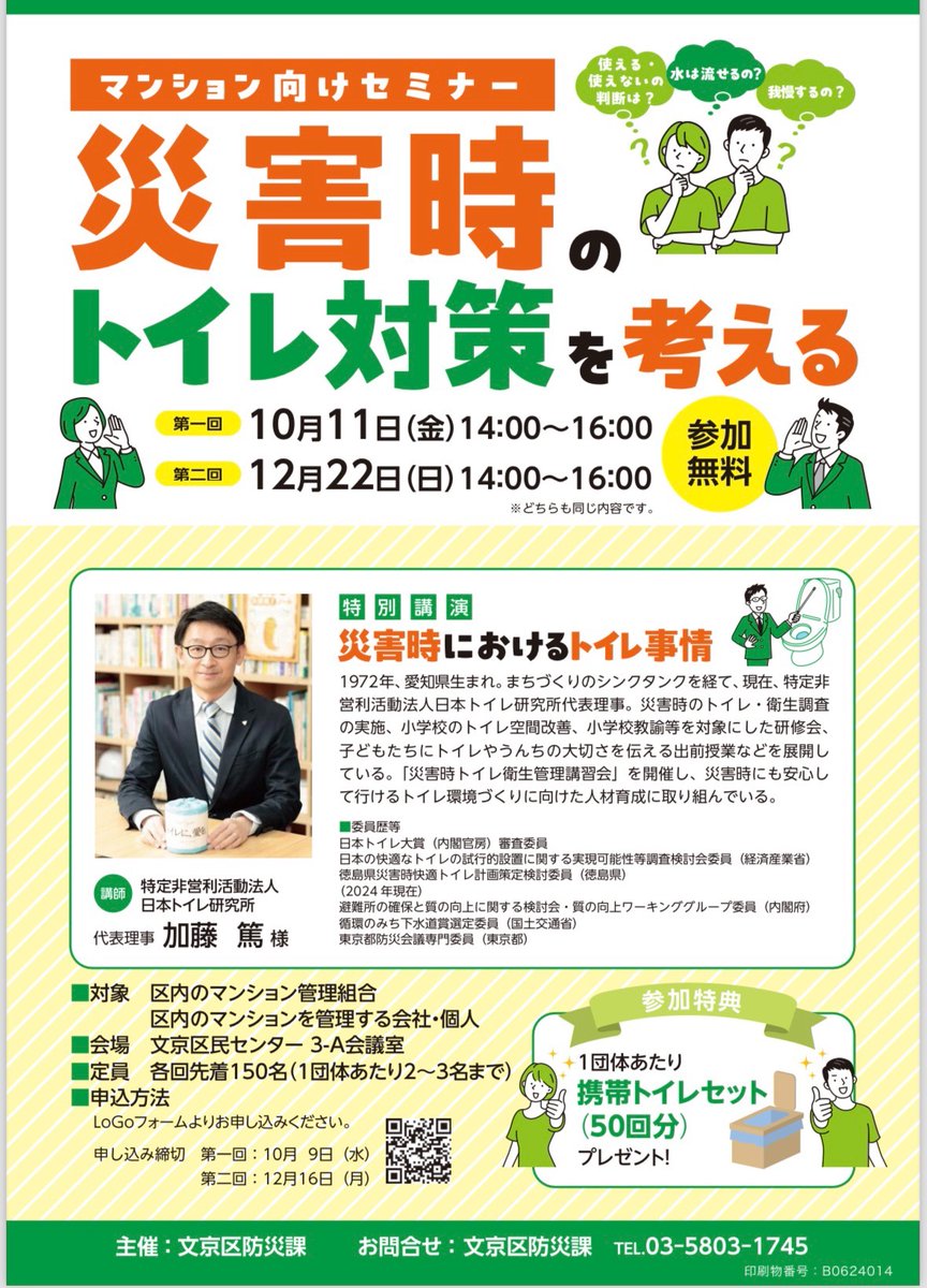【防災】「マンション向け災害時トイレ対策セミナー」の講演動画を11/21(木)までアーカイブ配信しています!ぜひご覧ください。※動画の転載、複製、改変等は禁止します。https://city.bunk..